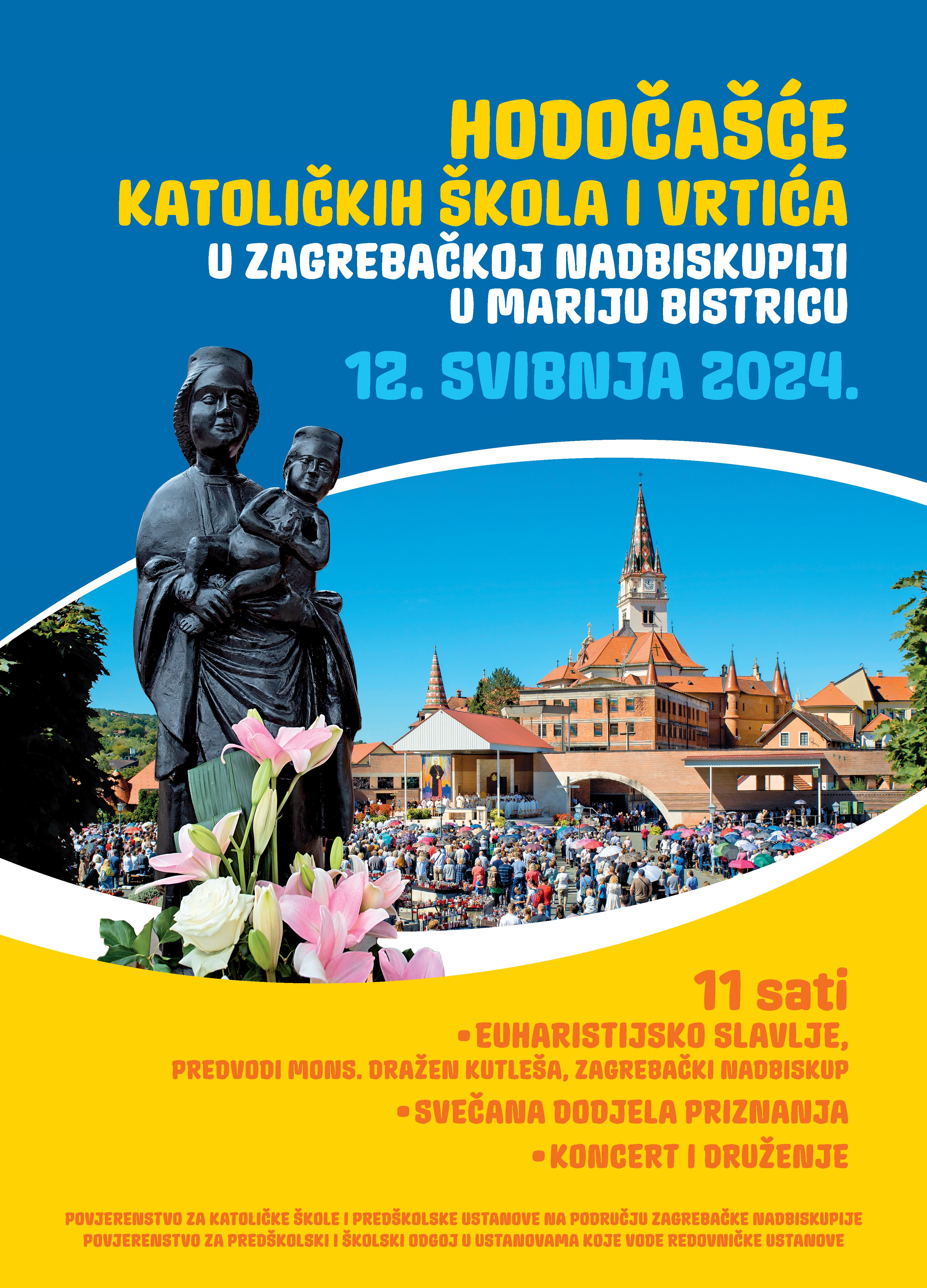 U organizaciji Povjerenstva za katoličke škole i predškolske ustanove na području Zagrebačke nadbiskupije i Povjerenstva za predškolski i školski odgoj u ustanovama koje vode redovničke ustanove u nedjelju 12. svibnja 2024., na Majčin dan, održat će se Hodočašće katoličkih škola i vrtića u Zagrebačkoj nadbiskupiji u Hrvatsko nacionalno svetište Majke Božje Bistričke u Mariji Bistrici.