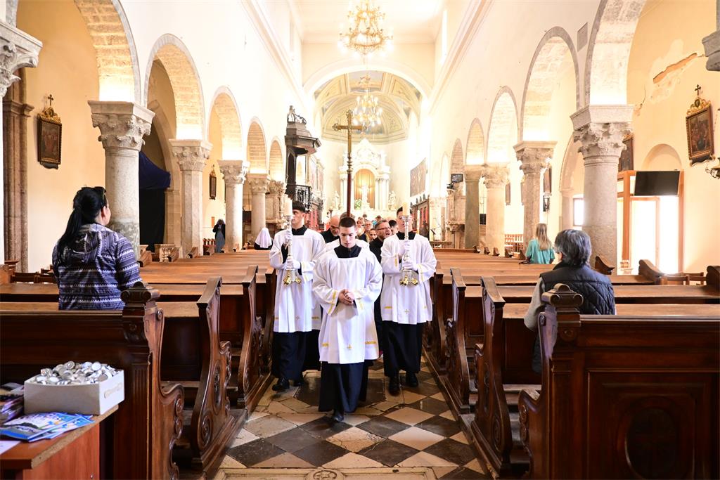 Nakon hodočašća u Istru, Šibenik, Vrpolje, Krasno i Senj te Aljmaš i Osijek, peto po redu zajedničko hodočašće sjemeništaraca i njihovih obitelji započelo je u ranim jutarnjim satima, a prva postaja na otoku Krku bila je krčka katedrala Uznesenja Blažene Djevice Marije, 'crkva majka' svih crkava Krčke biskupije, gdje je hodočasnike iz Zagreba, uz srdačnu dobrodošlicu, dočekao krčki biskup mons. Ivica Petanjak sa suradnicima.