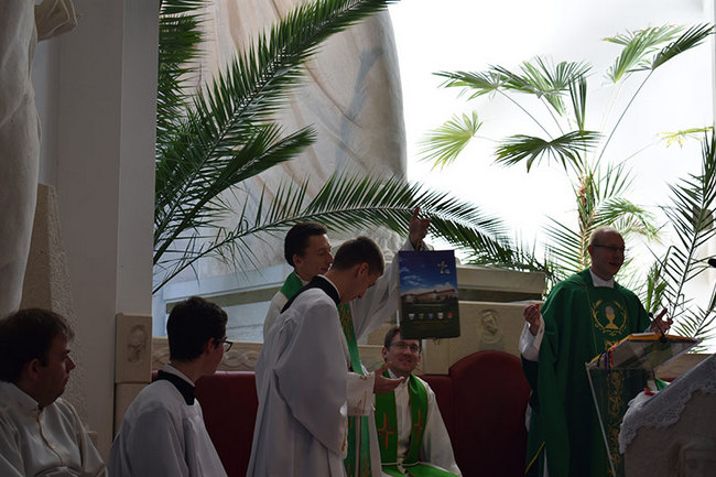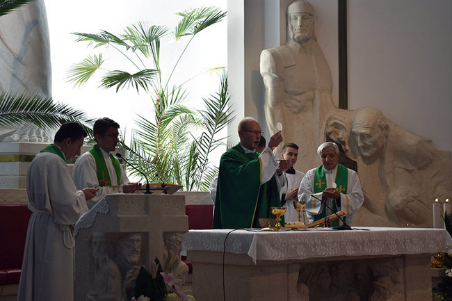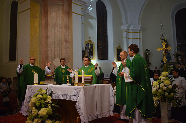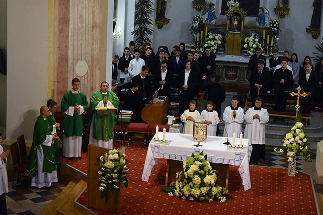 Uslijedila je Sveta misa koju je predvodio naš rektor, preč. Matija Pavlaković. U propovijedi između ostalog je naglasio: "Tamo gdje ne postoje gospodari drugih, grabežljivci časti i položaja; tamo gdje postoje tražitelji i obilje strpljenja; tamo gdje vlast otkriva, a ne skriva Boga; tamo se nalazi ljubav i svijet koji nam je ponuđen u Kristu. I kada sebe prepoznajem licemjernim, kada osjećam svu težinu riječi u kojima se pronalazi i moja muka, želim biti ponosan samo zbog toga što je Bog darovao objavu o svojoj ljubavi. U poniznost stane svaka veličina, dragi vjernici. No, da li je imamo? Da li smo ponizni? Poniznost je čudan biser, kažu neki - čim kažeš da ga posjeduješ, već si ga izgubio."
