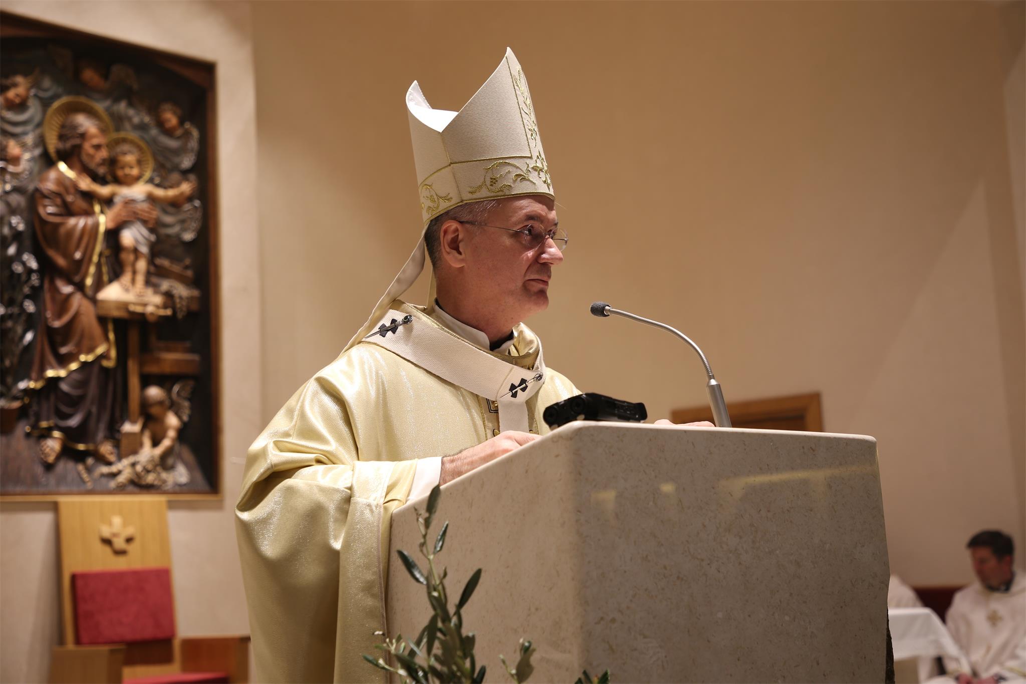 Danas nas na ovo euharistijsko zajedništvo okuplja proslava svetkovine svetoga Josipa, zaručnika Blažene Djevice Marije. Nalazimo se u drugoj polovini korizmenog vremena, koje je obilježeno ljubičastom bojom liturgijskoga ruha. Ovo razdoblje kao da se privremeno prekida ovom svetkovinom, čija bijela boja ruha već naslućuje nadolazeću proslavu Kristove pobjede nad smrću. Uistinu, draga braćo i sestre, sveti Josip zauzima posebno mjesto u životima Isusa i Marije, posvetivši cijelo svoje biće službi Utjelovljene Božje Riječi i otajstvima našeg otkupljenja. U životu ovog sveca posebno upada u oči njegova šutnja. Sveto pismo ne bilježi nijednu njegovu riječ. To nas potiče da s većom pozornošću pristupimo njegovom životu, promatrajući ga kroz odraz koji je ostavio u životima našeg Gospodina i njegove Majke. U sva četiri evanđelja Josip je prikazan kao Isusov otac, a Isus je opisan kao „sin Josipov.“ Bog je htio da naš Spas, u svojoj nejakosti, ima čvrst oslonac, zaštitnika i uzor koji mu odražava sliku nebeskoga Oca. Matej ga u svome rodoslovlju naziva mužem Marije, od koje se rodio Isus. Stoga bih večeras želio zajedno s vama razmišljati upravo o značajkama svetoga Josipa, posebice o njegovoj šutnji i samozatajnosti, te o njegovoj ulozi oca, zaručnika i muža.