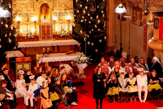 Omiljenom jaskanskom župnom crkvom, koja se od davnine ponosi svojom vrhunskom akustikom, razlijegali su se raznovrsni glazbeni zvuci i stihovi. Najmlađi glumci Kazališta Škrabe izveli su božićne stihove u kostimima anđela, zvijezda i betlehemskih životinjica (kostime je izradila Marija Špikić).