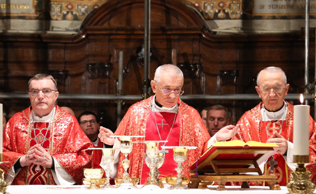 Na početku euharistijskog slavlja koje je predvodio riječki nadbiskup i metropolit mons. Ivan Devčić, rektor Papinskog Hrvatskog Zavoda Svetog Jeronima preč. Bože Radoš pozdravio je sve okupljene a na poseban način pozdrav je uputio hrvatskim biskupima koji od 12. do 17. studenog u Rimu borave u pohodu „Ad limina apostolorum“.