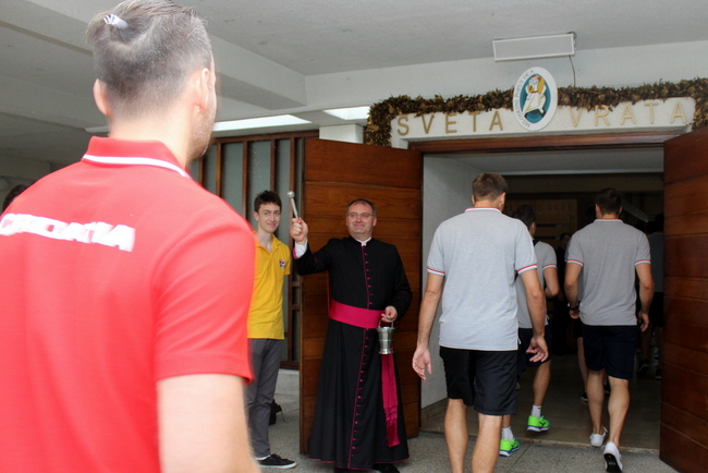U želji da se nakon fizičkih priprema i duhovno okrijepe, hrvatski rukometaši i stručni stožer, predvođeni izbornikom Željkom Babićem koji je ove godine već pohodio Svetište, sudjelovali su u sakramentu pomirenja i pobožnosti svetom Josipu, a zatim i na misnom slavlju koje je predvodio mons. Sente u koncelebraciji s preč. Draženom Karačićem, karlovačkim dekanom, vlč. Dragutinom Goričanecom, protojerejem stavroforom Željkom Pajićem i vlč. Vladom Mikšićem, suspidijarom u Svetištu.