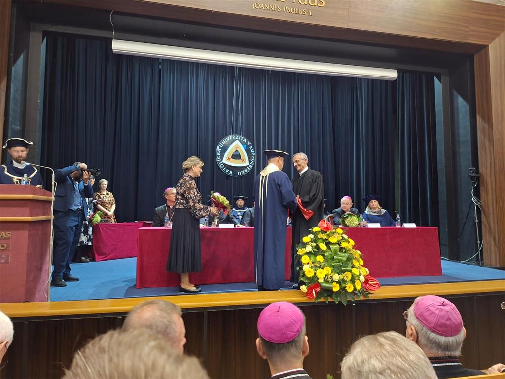 Priznanje doživljavamo kao potvrdu dosadašnje suradnje i prijateljstva naših sveučilišta, ali i kao poticaj daljnjim zajedničkim nastojanjima, osobito u razmjeni studenata i nastavnika te u znanstvenim projektima, na dobrobit obiju sveučilišnih zajednica, društvenih okružja u kojima djelujemo i Crkve čije poslanje nastojimo vjerno vršiti.