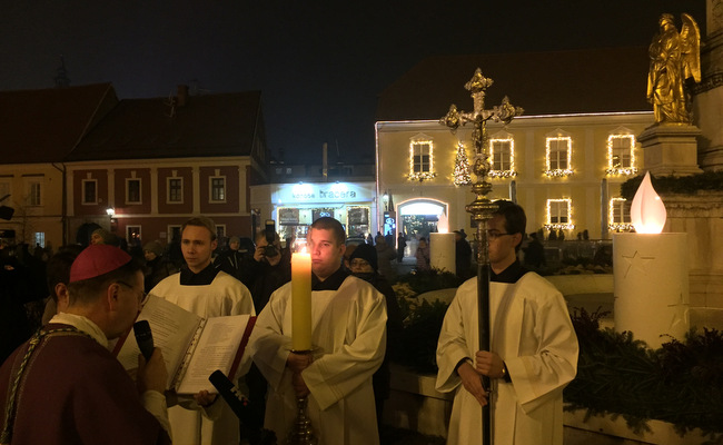 Zagrebački pomoćni biskup mons. Ivan Šaško predvodio je u subotu, 17. prosinca obred paljenja četvrte svijeće na adventskome vijencu ispred zagrebačke prvostolnice, u nazočnosti velikoga broja vjernika.