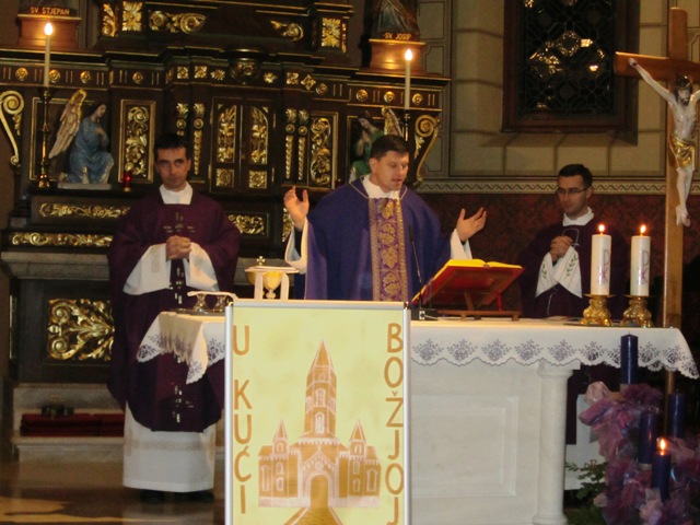 U homiliji, osvrćući se na Evanđelje 1. nedjelje došašća, vlč. Matošević je naglasio kako nam se možda čini pomalo neobičnim da se na početku nove liturgijske godine govori o onom što će se dogoditi na kraju svijeta. Kad čitamo evanđelje po Luki važno je uočiti kad je Isus počeo govoriti o posljednjim vremenima. Židovi su bili jako ponosni na svoj Jeruzalemski hram koji su gradili David i Salomon. I učenici su se divili tom hramu koji je bio veleban, prelijepo urešen i divili su mu se poput nas koji se divimo vašoj crkvi Navještenja. Isus im naglašava da će doći dan kad neće ostati kamen na kamenu u tom hramu. Njegova je poruka: sve ovozemaljske stvari, čovjek i ono što je on stvorio prekrasno je, ali ako se divimo i oslanjamo na zemaljsko, to nije dobro jer ovozemaljsko propada. Isus govori o znacima na suncu, mjesecu i zvijezdama, i izriče apokaliptične riječi - izdisat će ljudi. Za Isusove slušatelje to je bilo razumljivije. U ono vrijeme ljudi su se orijentirali po suncu, mjesecu i zvijezdama – oni su gledali u njih - to su im bili orijentiri. Kao što su nama mobiteli.