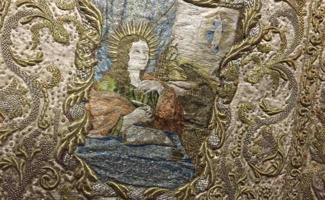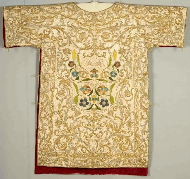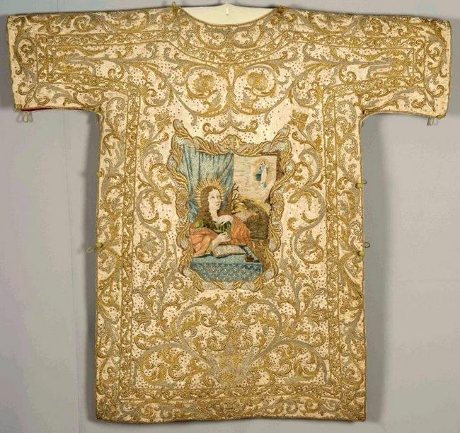 Foto: Dalmatika biskupa Mikulića s vezenim prikazom sv. Ivana evanđelista, nepoznati autor, 17. st., prednja strana nakon radova (snimio J. Kliska, fototeka HRZ-a)