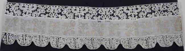 Foto: Čipka s vezenim grbovima biskupa Borkovića i Mikulića, nepoznati autor, 17. st., stanje nakon radova (snimila N. Vasić, fototeka HRZ-a)