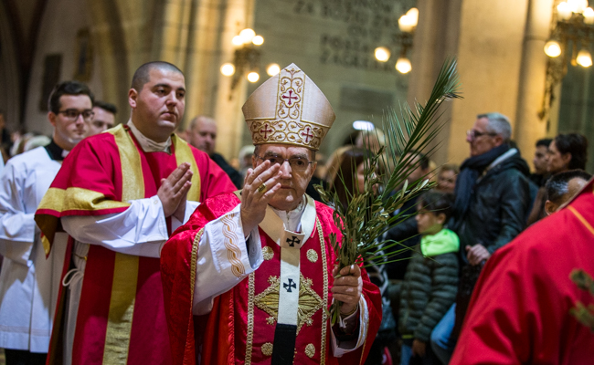 Zagrebački nadbiskup kardinal Josip Bozanić predvodio je na Cvjetnicu, Nedjelju Muke Gospodnje, euharistijsko slavlje u zagrebačkoj katedrali, koje je započelo svečanom procesijom te blagoslovom maslinovih i palminih grana.