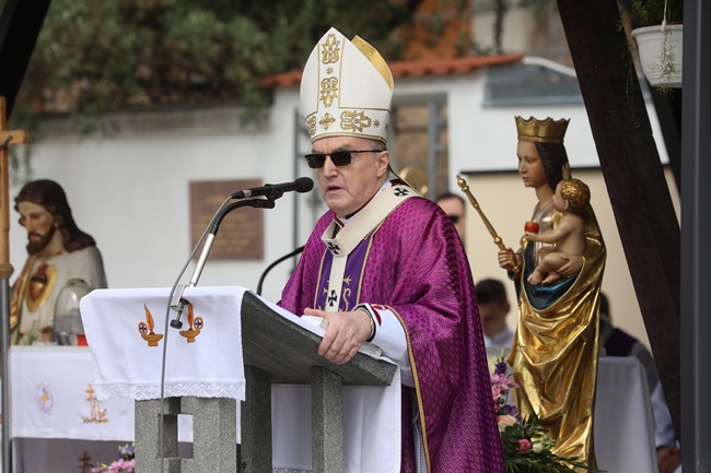 Na petu korizmenu nedjelju, 26. ožujka 2023., pred mnoštvom vjernika svečano misno slavlje u zagrebačkom naselju Stenjevec u Gospinom parku predvodio je zagrebački nadbiskup kardinal Josip Bozanić.
