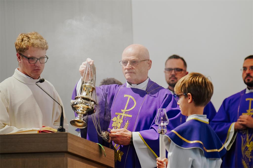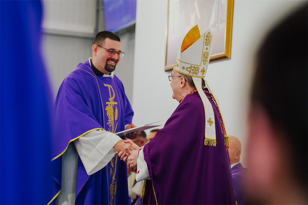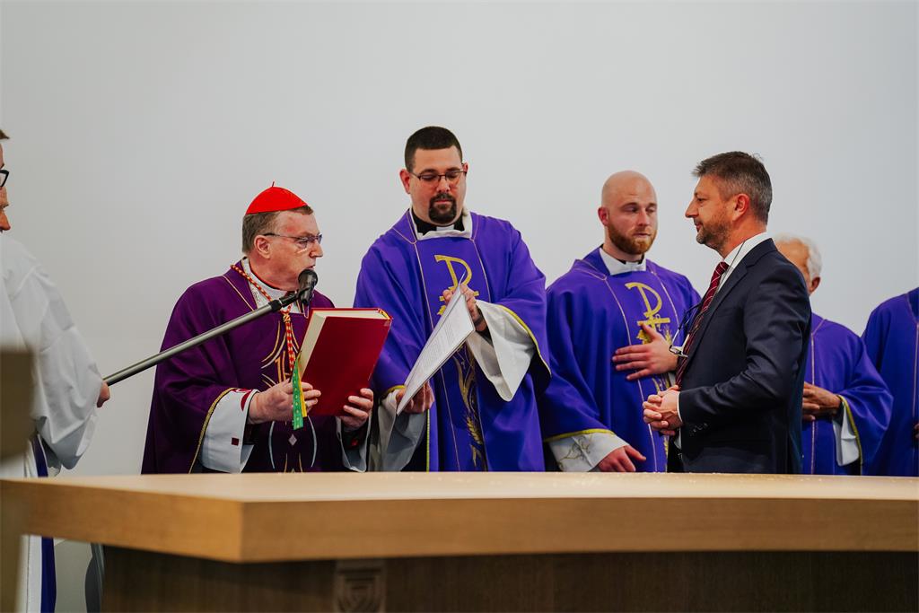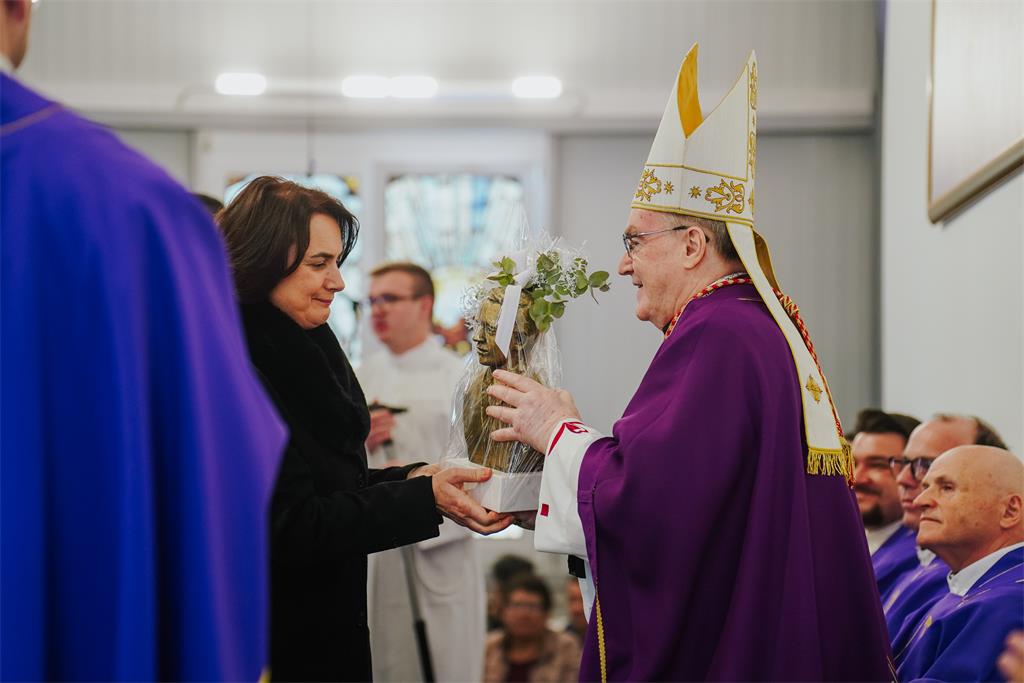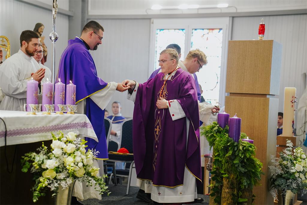 Župnik je zahvalio Kardinalu na predvođenju misnoga slavlja i blagoslovu oltara, ambona i svetohraništa, mjesta s kojih će se hraniti naša vjera. Župnik je uime cijele župne zajednice čestitao kardinalu Bozaniću 50 godina svećeničkog poniznog služenja, ustrajne molitve, predanosti i brige za Božji narod.