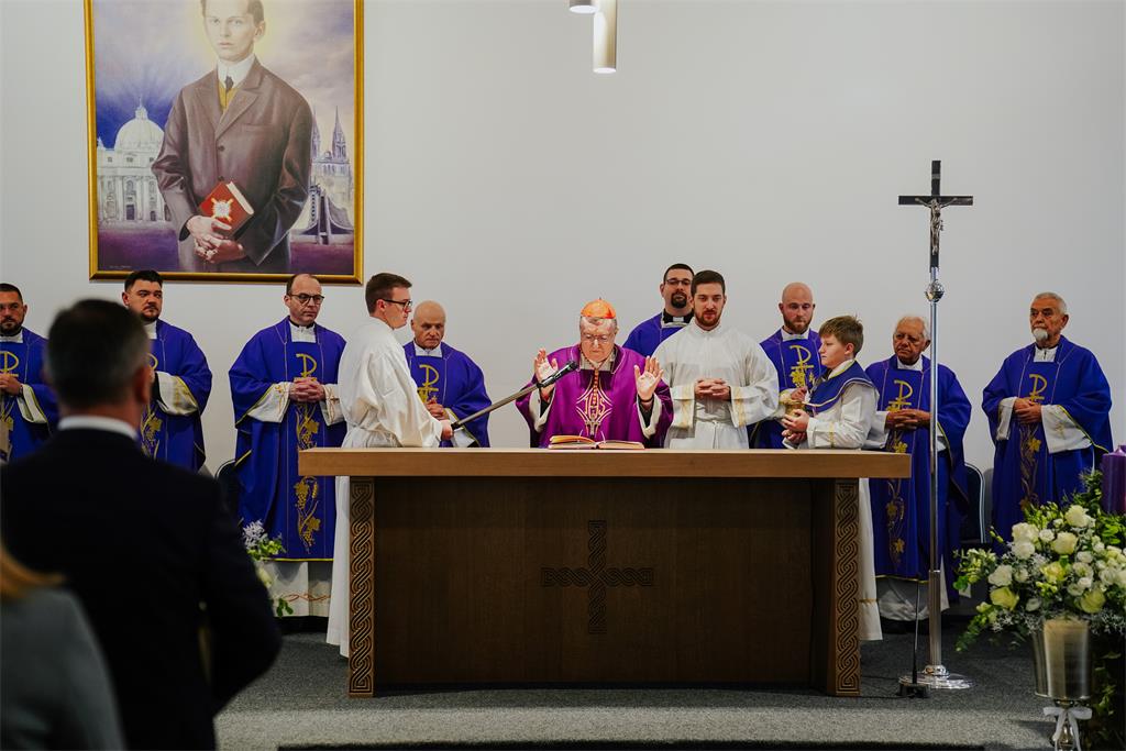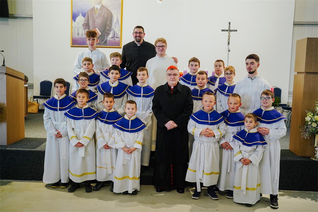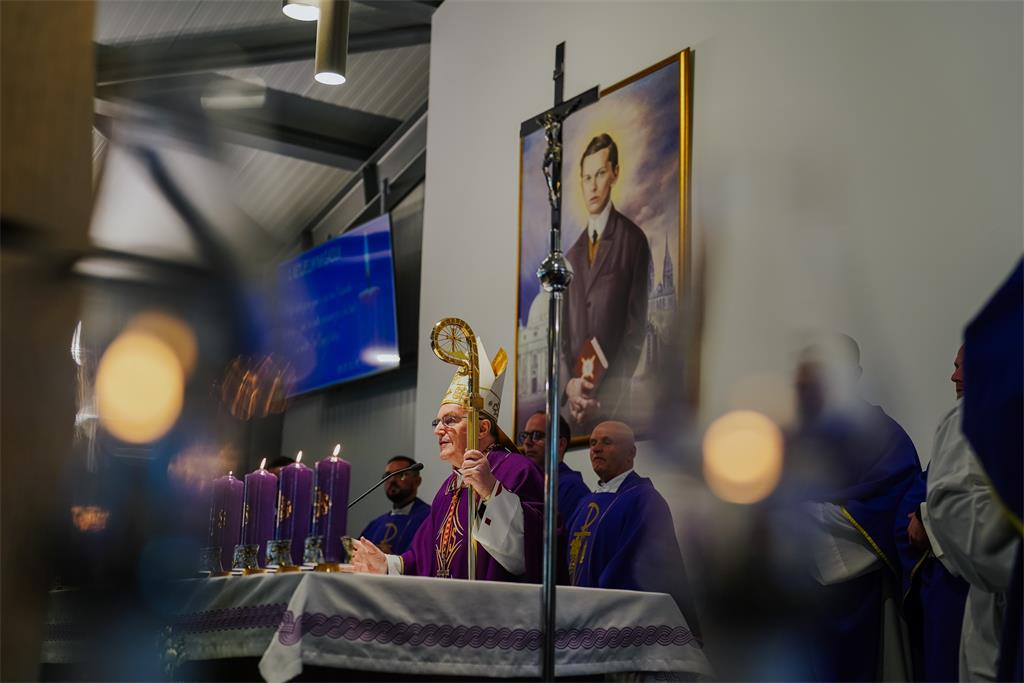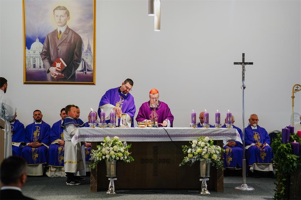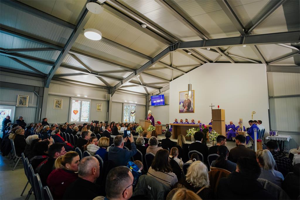 Kardinal je podsjetio kako je ova župa "osnovana 10. veljače, na blagdan blaženog Alojzija 2011. godine. Župa iduće godine slavi 15 godina rasta i djelovanja. Župa - to ste vi, vi ste blagoslov ove župe, vi ste oni koje Isus okuplja i koji želite Isusa slijediti. Molite Isusa da vam dade snagu da uvijek pred vama blista i bl. Ivan Merz i bl. Alojzije Stepinac, svjedok vjere nade i čiste savjesti."