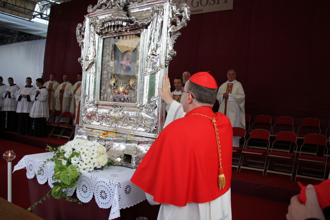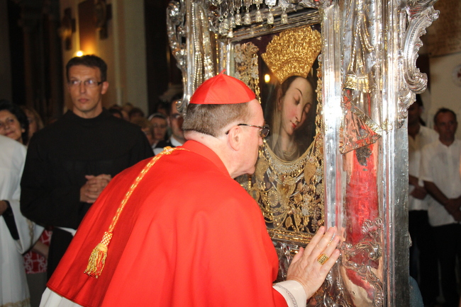 Nakon popričesne molitve na večernjoj misi (Gospin Užežin), koju je na Trgu dr. Franje Tuđmana predvodio provincijal splitske franjevačke provincije Presvetog Otkupitelja fra Joško Kodžoman, Kardinal se pomolio pred slikom Čudotvorne Gospe Sinjske.