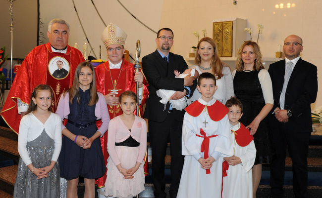 Krštenje je održano tijekom svečanog euharistijskog slavlja u župnoj crkvi, koje je predvodio kardinal Bozanić uz koncelebraciju mjesnog župnika preč. Josipa Ružmana, vlč. Norberta Kopriveca, vlč. Marka Vukovića i vlč. Benjamina Capkovića.