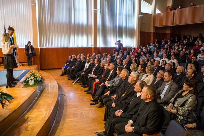 Na svečanoj akademiji prisustvovali su i potpredsjednik Hrvatskog sabora akademik Željko Reiner, ministrica kulture Nina Obuljen Koržinek, riječki nadbiskup i metropolit mons. Ivan Devčić, pomoćni biskup zagrebački u miru mons. Valentin Pozaić, predstavnici državnih i gradskih vlasti, kao i predstavnici znanstvenog i kulturnog života te redovničkih i crkvenih ustanova. (IKA/Foto: Tiskovni ured Zagrebačke nadbiskupije)