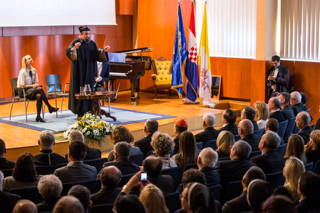 Program svečanosti započeo je kratkom predstavom o povijesti isusovačkog Fakulteta, a nastavio se prigodnim obraćanjima dekana Fakulteta o. Ivana Kopreka, rektora Sveučilišta u Zagrebu prof. dr. sc. Damira Borasa te ministrice znanosti i obrazovanja prof. dr. sc. Blaženke Divjak.