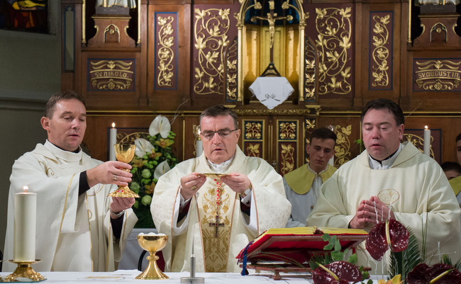U koncelebraciji euharistijskog slavlja bili su domaći župnik vlč. Slavko Kresonja, župnik Župe Uzvišenja Svetog Križa vlč. Josip Kuzel, župni vikar u Župi svetog Martina p. Stjepan Ivan Horvat CPPS, p. Ilija Grgić CPPS, te nadbiskupov tajnik vlč. Ivan Lukić.