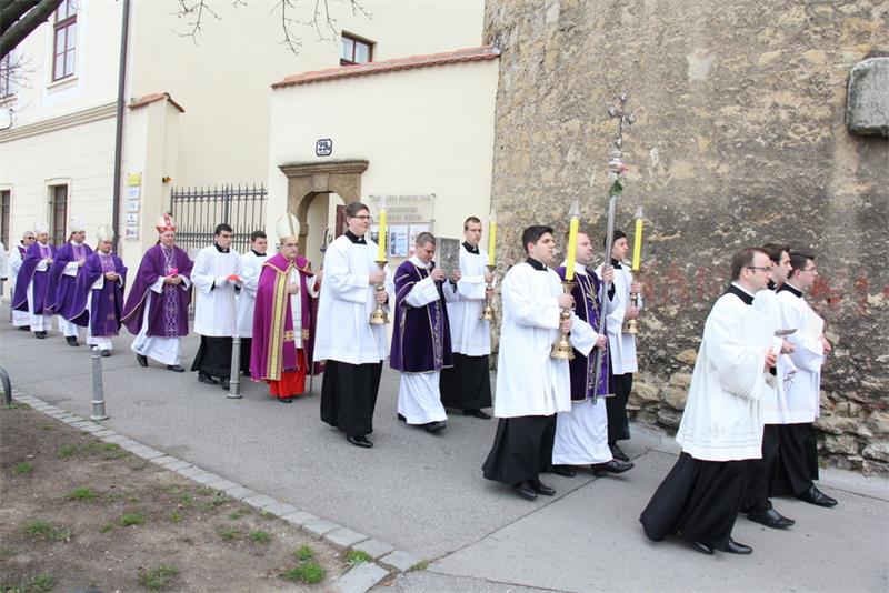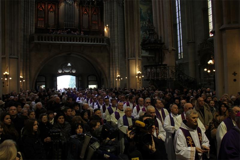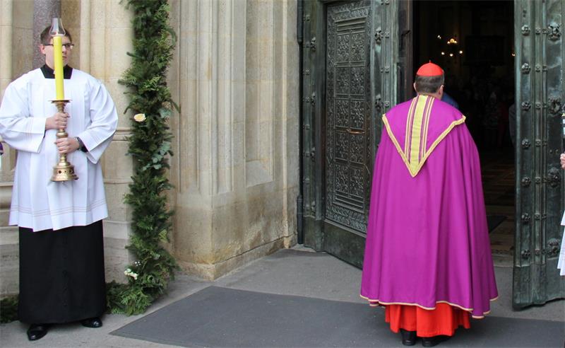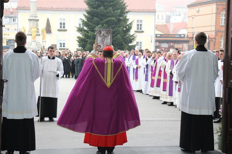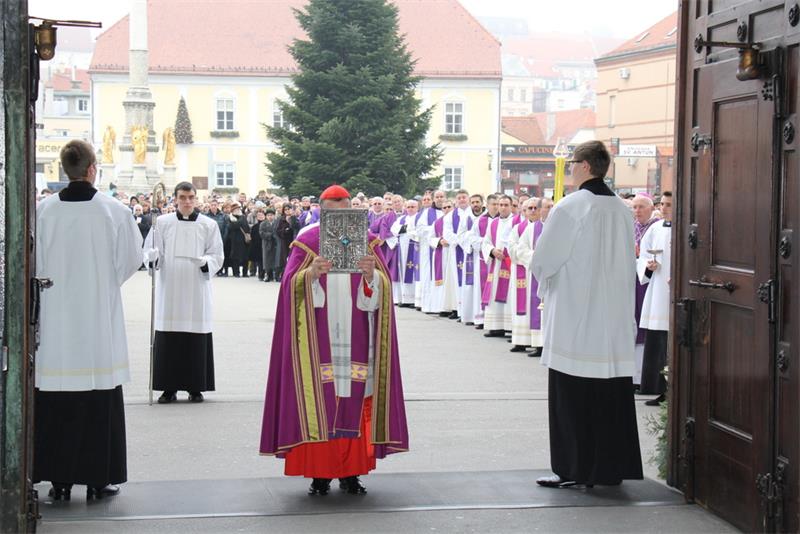 Po dolasku svečane procesije pred vrata zagrebačke prvostolnice, Kardinal ih je uz molitveni zaziv otvorio blagoslovivši sve okupljene evanđelistarom, a potom se svečana procesija uputila prema glavnom oltaru gdje je Kardinal blagoslovivši vodu i poškropivši njome okupljene vjernike, započeo euharistijsko slavlje.