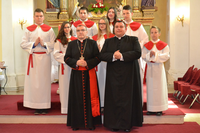 Nakon vlč. Matije, dobrodošlicu Kardinalu izrazilo je i dvoje krizmanika riječima: „Molimo Vas da danas molite s nama i za nas. Hvala Vam što ste danas s nama“, nakon čega je Kardinal započeo euharistijsko slavlje. Na početku misnog slavlja Kardinal je zahvalio na pozdravima dobrodošlice koje su mu uputili župnik i krizmanici. Kardinal je ujedno i pozdravio svu braću svećenike koji su svojim prisustvom uzveličali ovo misno slavlje. Potom je zahvalio na lijepom danu, a prije svega dragom Bogu na svim darovima koje nam daje.