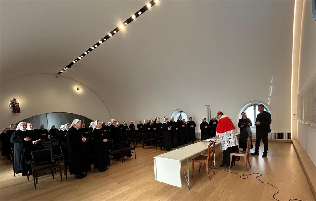 Na početku susreta Časna Majka pozdravila je Kardinala, zaželjela mu dobrodošlicu i izrazila zahvalnost za njegovu pastirsku brigu i duhovnu potporu tijekom njegova upravljanja Zagrebačkom nadbiskupijom i preporučila cijelu Družbu u njegove molitve.
