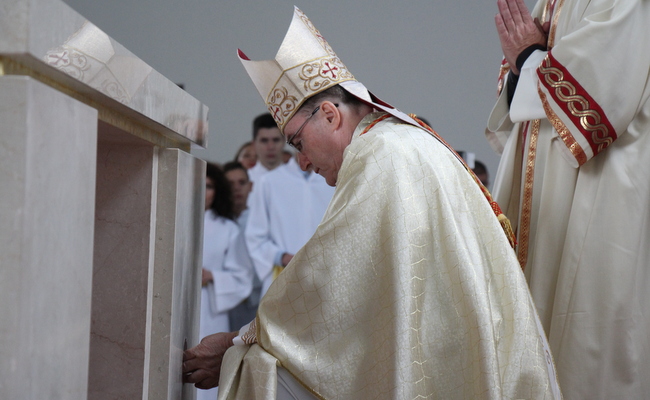 Nakon homilije uslijedio je svečani obred posvete oltara, pjevanjem Litanija svih svetih, ugrađivanjem moći bl. Alojzija Stepinca u sam oltar, pomazanjem oltara krizmanim uljem, te kađenjem oltara. Aktivni članovi župe te pastoralni i ekonomski vijećnici, uresili su oltar na kojem je prvi puta nastavljeno euharistijsko slavlje.