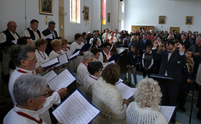 Po pričesti Kardinal je prenio Presveto u svetohranište, a potom je na oltaru potpisao svečanu povelju o posveti župne crkve koju je pročitao župnik župe Oroslavje preč. Dragutin Bosnar.