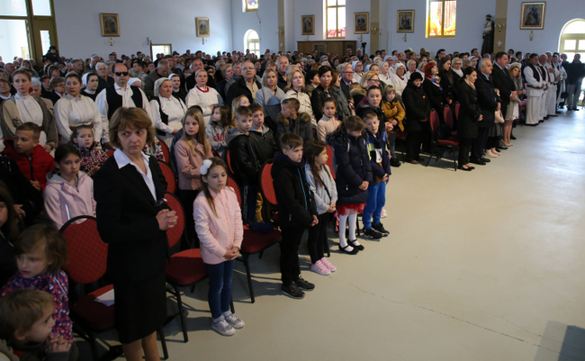 Na kraju zahvale, kardinalu Bozaniću u ime svih prisutnih čestitao je 30-tu obljetnicu biskupske službe, a prigodni poklon Kardinalu su u ime župljana predali bračni par Popović-Matuša sa svoje četvero djece.