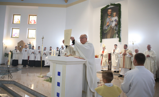 Pred ulaznim vratima crkve, kardinala Bozanića pozdravio je župnik preč. Šestak zahvaljujući mu na dolasku i pastirskoj podršci koju kao nadbiskup pruža u izgradnji doma Božjega za ovu župnu zajednicu: "Prije dvije godine 11. lipnja 2017. radosno smo blagoslovili gradilište i molili Božji blagoslov da započeto djelo gradnje župne crkve sretno privedemo kraju. Pod moćnim zagovorom svetog Josipa koji nad ovom župom bdije već 25.godina sretno smo došli do dana posvete župne nam crkve. Nova crkva s tornjem daju novu vizuru ovoj župi, a svim župljanima i onima koji ovuda prolaze novi orijentir i putokaz. Gradili smo ovu crkvu da bude dom molitve i susreta, u kojoj će umorni i opterećeni naći okrepu i utjehu, u kojoj će se dijeliti bogatstvo Kristove prisutnosti u svetim sakramentima."