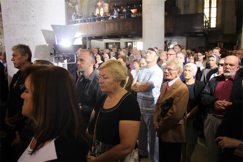 Euharistijskom slavlju prisustvovali su predstavnici izvršne, zakonodavne i sudbene vlasti na čelu s predsjednicom Republike Hrvatske Kolindom Grabar Kitarović i predsjednikom Hrvatskog sabora Josipom Lekom; predsjednik HAZU-a akademik Zvonko Kusić, gradonačelnik grada Zagreba Milan Bandić, hrvatski branitelji te predstavnici javnog i kulturnog života.