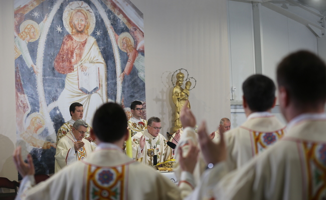 Na Nedjelju Uskrsnuća Gospodnjega euharistijsko slavlje u Bogoslužnom prostoru bl. Alojzija Stepinca predvodio je zagrebački nadbiskup kardinal Josip Bozanić, u koncelebraciji s kanonicima Prvostolnog kaptola zagrebačkog mons. Stjepanom Kožulom, mons. Stjepanom Večkovićem, mons. Ivanom Miklenićem, mons. Ivanom Hrenom i mons. Zlatkom Korenom; biskupskim vikarom i kancelarom Nadbiskupskog duhovnog stola preč. Markom Kovačem; rektorom Nadbiskupskog bogoslovnog sjemeništa preč. Željkom Faltakom; odgojiteljima u Nadbiskupskom bogoslovnom sjemeništu vlč. Josipom Đurinom i vlč. Tonijem Potrebićem i nadbiskupskim tajnikom vlč. Petrom Belinom.