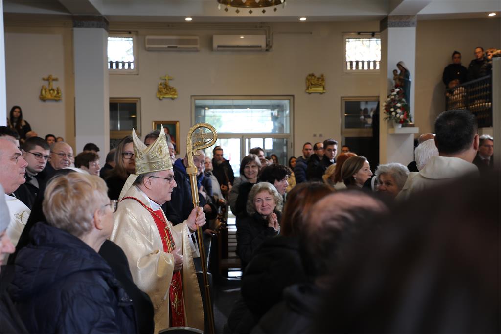 Na početku mise vlč. Faltak pozdravio je okupljene vjernike, one koji su pratili prijenos mise putem Hrvatske televizije i Hrvatskog katoličkog radija kao i okupljene svećenike predvođene dekanom preč. Golubićem te kardinala Bozanića. Čestitao je Kardinalu 50. obljetnicu od mlade mise koju je proslavio ove godine u Vrbniku i Zagrebu, a okupljenima poručio: "Stavimo danas pred Gospodina sve ono s čime smo došli: naše zahvale, nakane, prošnje, zabrinutosti i opterećenosti. Iskažimo danas našem Kristu Kralju slavu i čast i povjerimo mu svoje živote."