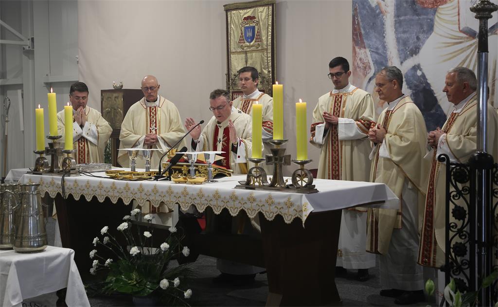 Zagrebački nadbiskup kardinal Josip Bozanić predvodio je na Veliki četvrtak, 6. travnja 2023., Misu posvete ulja u Bogoslužnom prostoru bl. Alojzija Stepinca, u zajedništvu s apostolskim nuncijem u Republici Hrvatskoj mons. Giorgiom Linguom, nadbiskupom koadjutorom mons. Draženom Kutlešom, pomoćnim biskupima mons. Ivanom Šaškom i mons. Mijom Gorskim, redovničkim provincijalima te prezbiterijem Zagrebačke nadbiskupije.