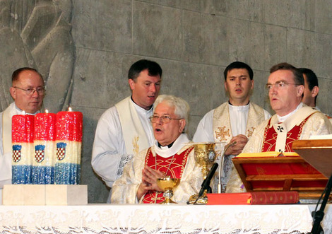 4. Dok se radujemo i čestitamo za postignute uspjehe Hrvatske u pregovorima s Europskom unijom, vrijedno je napomenuti kako je Benedikt XVI. nama, ali još više svijetu, rekao da su Hrvati duboko europski narod, u srcu Europe. Što se tiče pripadnosti Hrvatske europskim političkim institucijama, ostavio nam je tri znakovite riječi o toj pripadnosti, rekavši da je ona: logična, pravedna i nužna. S pomoću njih zapravo je spojio prošlost, sadašnjost i budućnost. Naime, logično je, jer je povijesno i kulturološki Hrvatska oduvijek europska; pravedno je u odnosnu na sadašnjost, jer je Hrvatska i u najtežim danima, braneći svoju slobodu, branila europske vrijednosti izrasle iz kršćanskoga čovjekoljublja; nužno je u odnosu na budućnost, jer se ne radi samo o nekoj hrvatskoj želji i traženju blagostanja, nego o uzajamnosti.