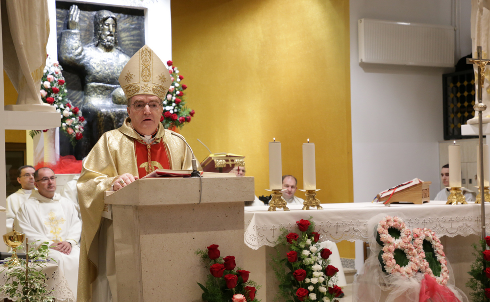 Zahvalivši za darove i riječi zahvale, Kardinal je još jednom čestitao okupljenima obljetnicu župe obrativši se posebno mladima: "Dragi mladi! Danas nije problem vjera. Ljudi vjeruju u svakojake priče. Ima mnogo onih koji se žele staviti na mjesto Boga. Današnja svetkovina sve nas poziva da slijedimo istinu i da se ne damo zavarati tim lažnim bogovima. To vam od srca želim - da slijedite istinu i Isusa koji je jedini put, istina i život!"