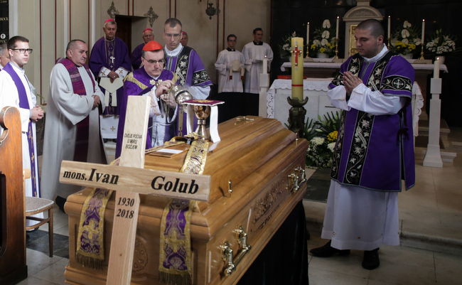 Zagrebački nadbiskup kardinal Josip Bozanić predvodio je u utorak 30. listopada 2018. godine u crkvi Krista Kralja na zagrebačkom Mirogoju sprovodnu misu i obrede za preminulog mons. Ivana Goluba u zajedništvu s biskupom banjalučkim mons. Franjom Komaricom, biskupom varaždinskim mons. Josipom Mrzljakom, biskupom sisačkim mons. Vladom Košićem, dekanom Katoličkog bogoslovnog fakulteta Sveučilišta u Zagrebu prof. dr. sc. Marijem Cifrakom te mnogobrojnim okupljenim svećenicima i vjernicima.