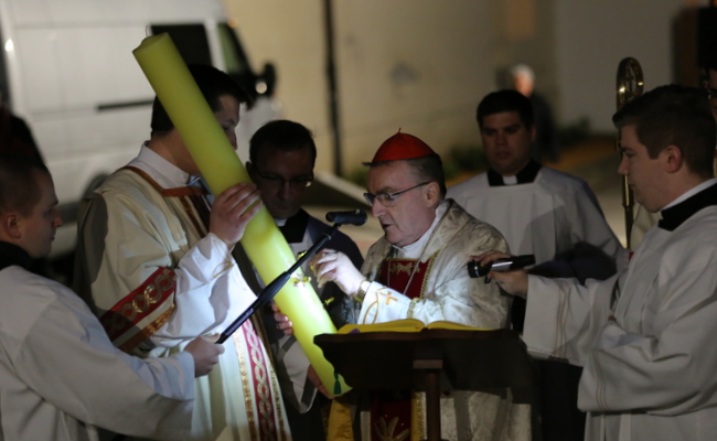 Kardinal je naglasio da se Crkva u događaju Vazma spominje prijelaza iz smrti u život i da je svjetlost Uskrsa pobijedila tamu, milost uništila grijeh, a život svladao smrt. "Ove se noći sabiremo oko uskrsne svijeće koja simbolizira Krista Uskrsloga koji reče