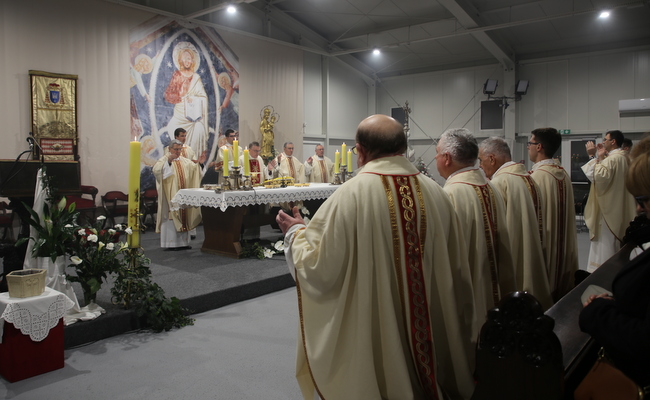 Vazmeno bdijenje započelo je Službom svjetla kojom se Kristovo svjetlo, uskrsna svijeća, unijelo u procesiji u bogoslužni prostor. Potom je otpjevan Hvalospjev uskrsnoj svijeći te je uslijedila Služba riječi.
