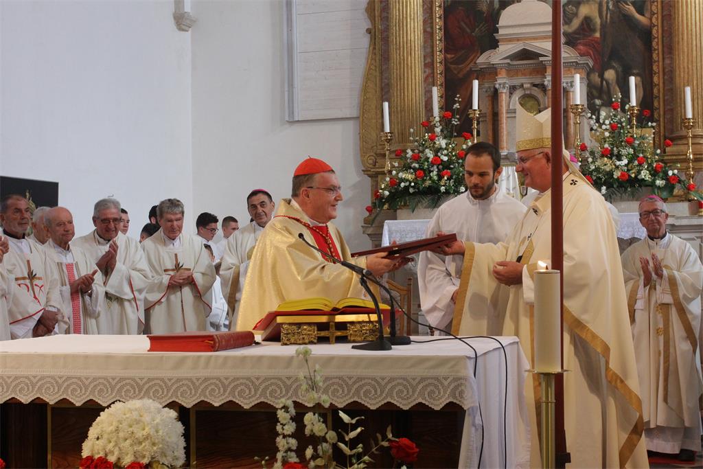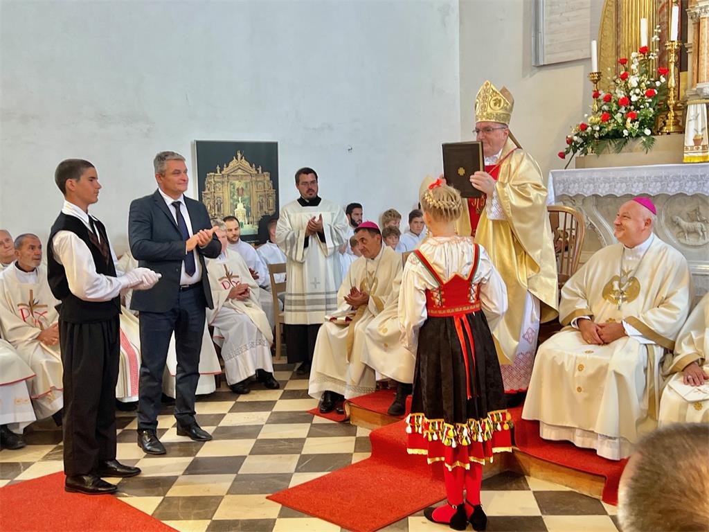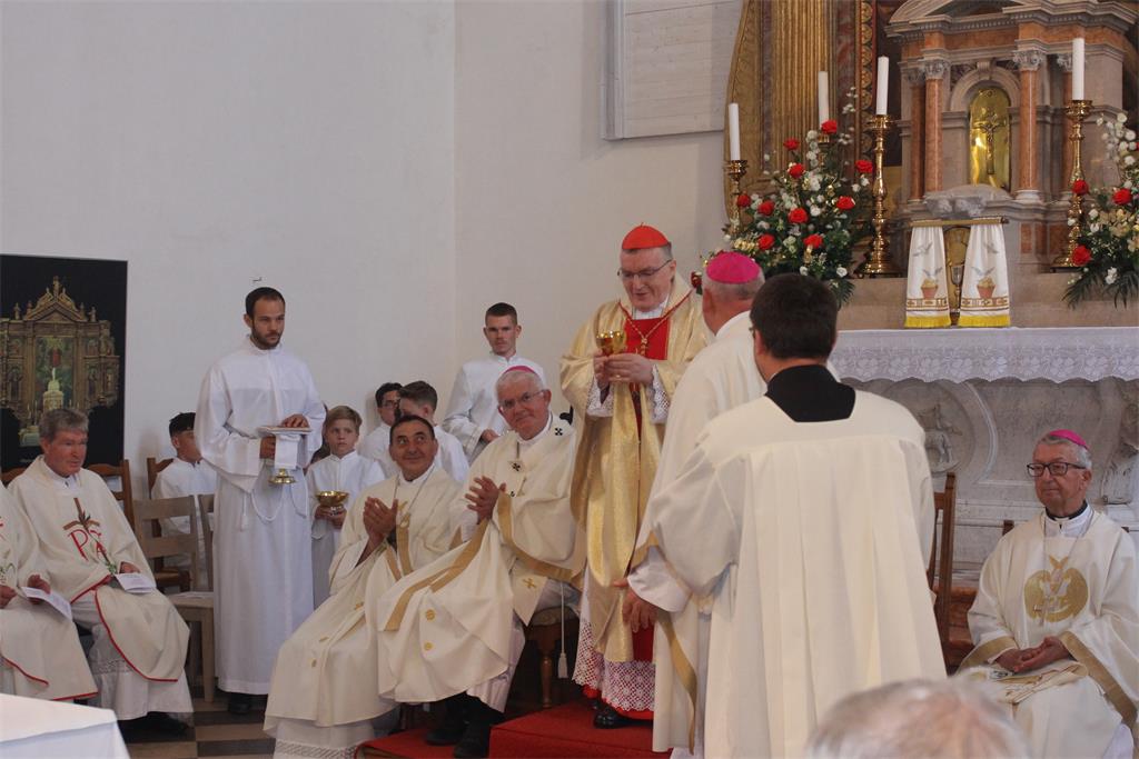 Uime Krčke biskupije i župe Vrbnik biskup Petanjak poklonio je kardinalu Bozaniću kalež i pliticu.