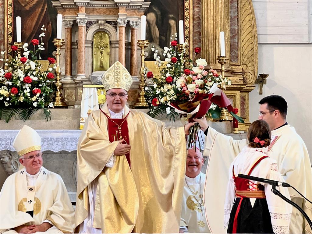 Biskup Petanjak naglasio je kako je u našem narodu "duboko ukorijenjena svijest da ono što govori zagrebački nadbiskup, da je to glas Crkve u Hrvata. To je baština koju nam je na posebni način ostavio blaženi Alojzije Stepinac i sluga Božji kardinal Franjo Kuharić. Vi ste nastojali tu baštinu pod svaku cijenu očuvati, a time ste ulazili i u velike rizike, jer čovjek je uvijek veliki rizik. Riskantno je materijalnim dobrima upravljati i na ispravan način se njima služiti, a još je riskantnije i odgovornije čovjeku vjerovati, u njega nade polagati, s njime računati, jer čovjek je samo čovjek. Raditi s ljudima uvijek je rizik i cijena je visoka. Ali se ne možemo odmaknuti od tog čovjeka, jer smo i mi samo ljudi, i jer nam ih je Gospodin dao da im služimo i da ih ne izgubimo. Vjerujemo da ste svoju svećeničku i biskupsku službu vršili velikodušno i da se niste štedjeli. Dali ste najviše što ste imali, a to je samoga sebe i na taj ste način ostvarili svoje biskupsko geslo: "Da život imaju!" Uložili ste i darovali svoj život Isusu Kristu, kako bi ga on preko Vas mogao darivati drugima. Mi kao mala biskupija i ovaj grad koji je također mali sretni smo i ponosni što je iz ove naše sredine Gospodin podigao Vas i postavio Vas kao svjetionik našem narodu te tako potvrdio njegovo načelo da je ono što je u ljudskim očima malo u Bogu je veliku."