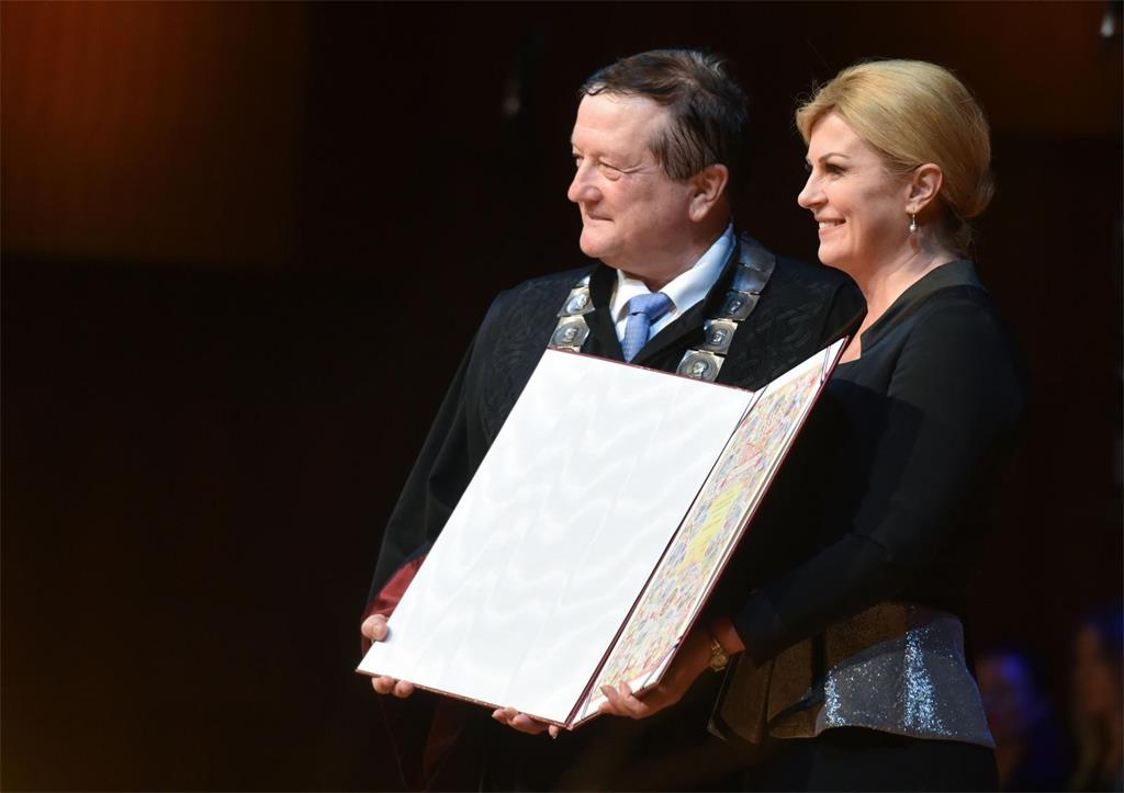 Povodom ove svečane obljetnice predsjednica Grabar-Kitarović uručila je Povelje Republike Hrvatske Sveučilištu u Zagrebu te fakultetima koji su proslavili sto ili više od sto godina postojanja.