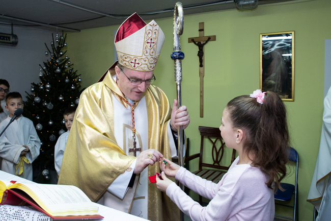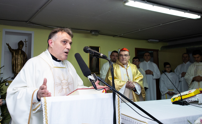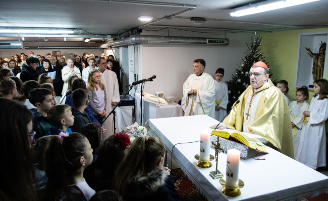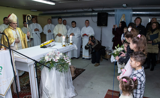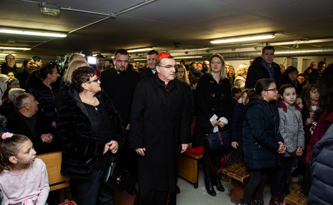 Prije početka euharistijskog slavlja dobrodošlicu kardinalu Bozaniću izrazio je domaći župnik vlč. Josip Horvat, koji je zajedno sa župnim vikarom vlč. Željkom Nestićem i nadbiskupovim tajnikom vlč. Ivanom Lukićem bio u koncelebraciji slavlja. Kardinal je zahvaljujući župniku na uvodnim riječima kazao kako ovo slavlje liči na Betlehem jer smo danas u ovoj skromnosti prostora obasjani svjetlom Isusovim koji se rodio i koji je bio sličan djeci okupljenoj oko ovoga oltara.