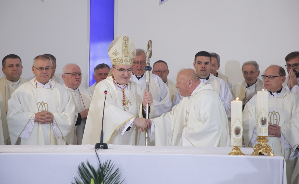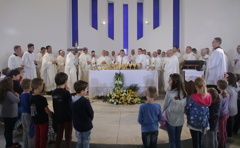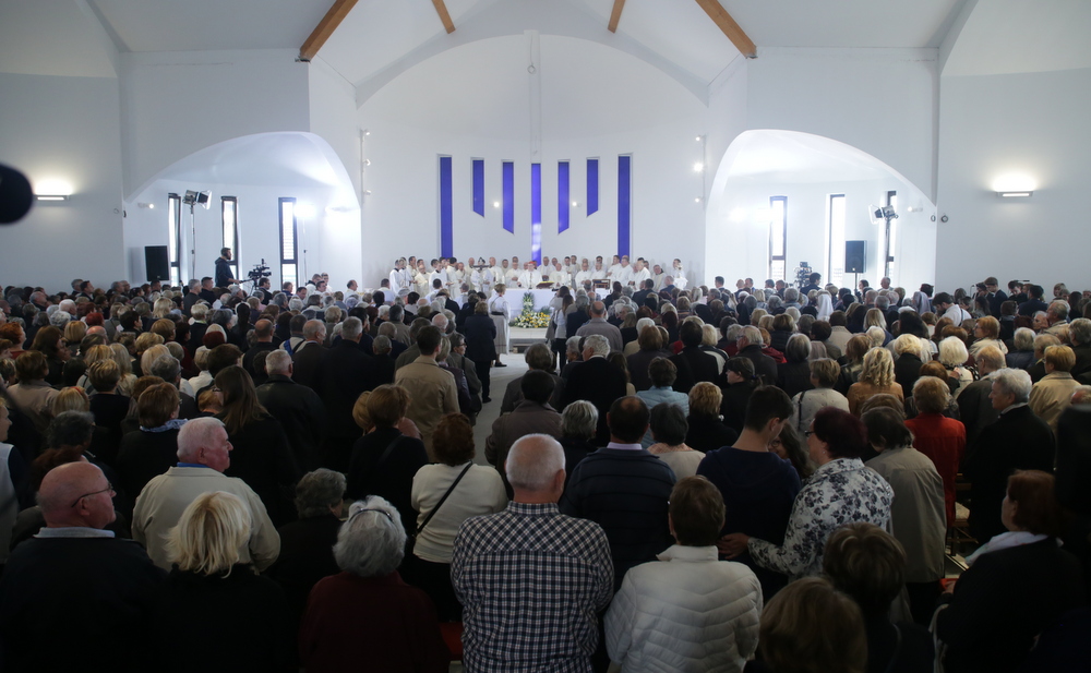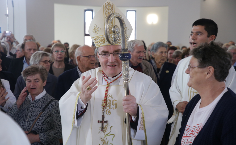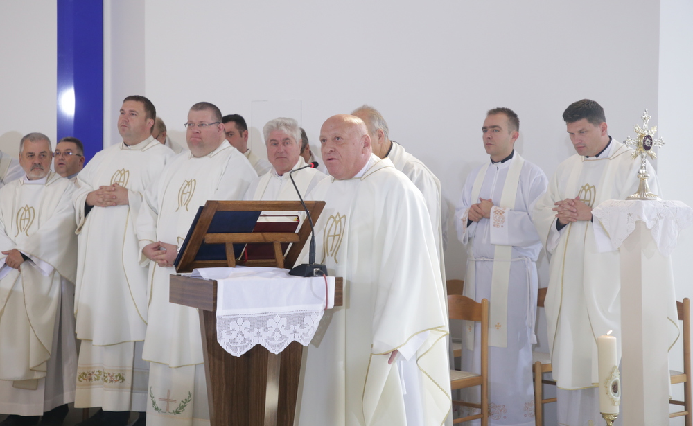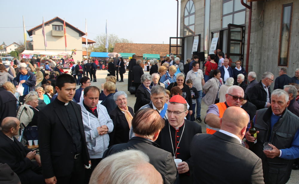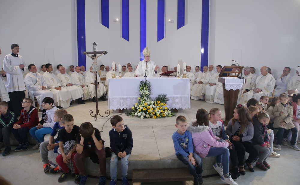 Crkva nije završena. Ja se nadam da ćemo uskoro doći na posvetu. Danas smo ovdje slavili velike obljetnice i jako mi je drago što smo upravo ovdje komemorirali mnoge događaje iz naše nedavne prošlosti. Sve ovo svjedoči da je Bog među nama, da je Bog bogat milosrđem, da uvijek oprašta, pa neka i ova crkva bude znak novog zajedništva u ovoj župi i u ovome kraju. Amen.“