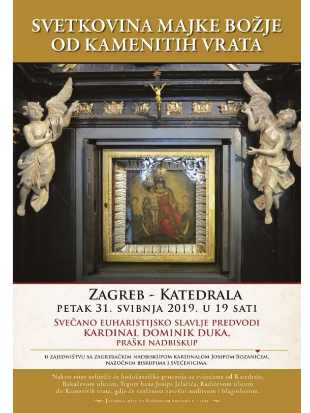 Svetkovina Majke Božje od Kamenitih vrata, zaštitnice grada Zagreba proslavit će se u petak, 31. svibnja 2019. godine.