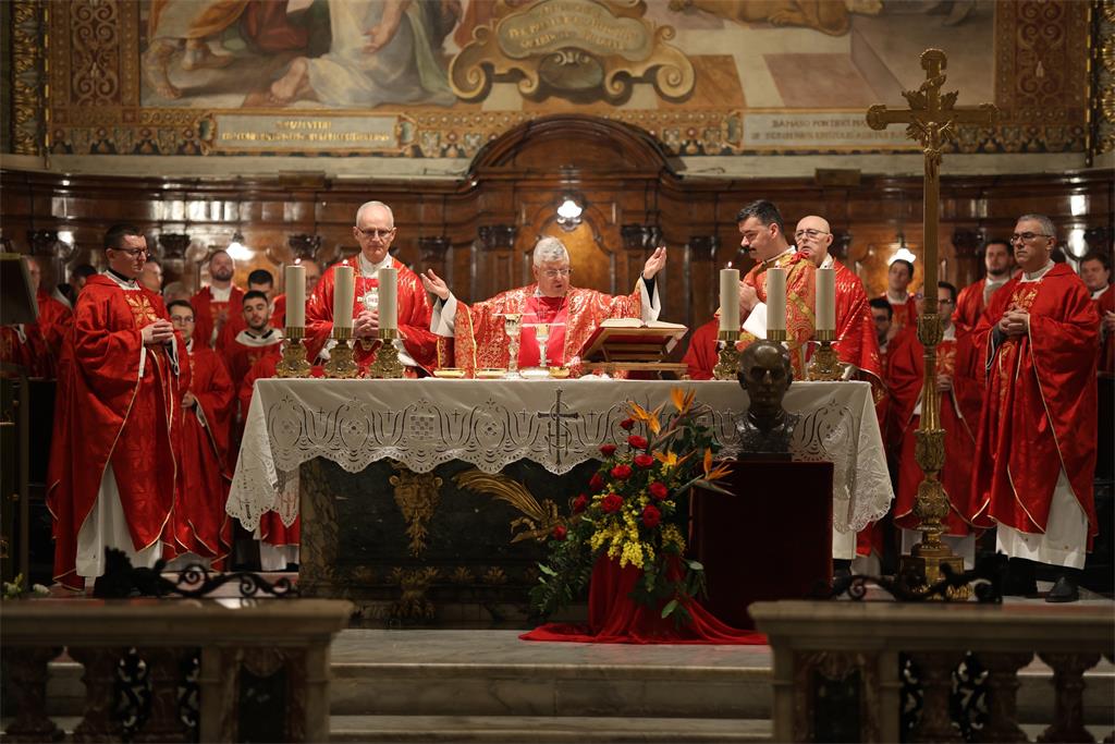 Hrvatska rimska zajednica svečanom svetom misom u nedjelju 9. veljače proslavila je blagdan blaženog Alojzija Stepinca u Hrvatskoj crkvi sv. Jeronima. Misno slavlje predvodio je kardinal Gianfranco Ghirlanda, SJ. U koncelebraciji su bili mons. Petar Rajič, nadbiskup i apostolski nuncij u Italiji i San Marinu; mons. Giorgio Lingua, nadbiskup i apostolski nuncij u Hrvatskoj; Marko Đurin, rektor Zavoda; mons. Ivan Kovač, podtajnik Dikasterija za kler; mons. Hrvoje Škrlec i mons. Mario Popović iz Državnog Tajništva Svete Stolice; fra Miljenko Šteko, gvardijan Međunarodnog zavoda