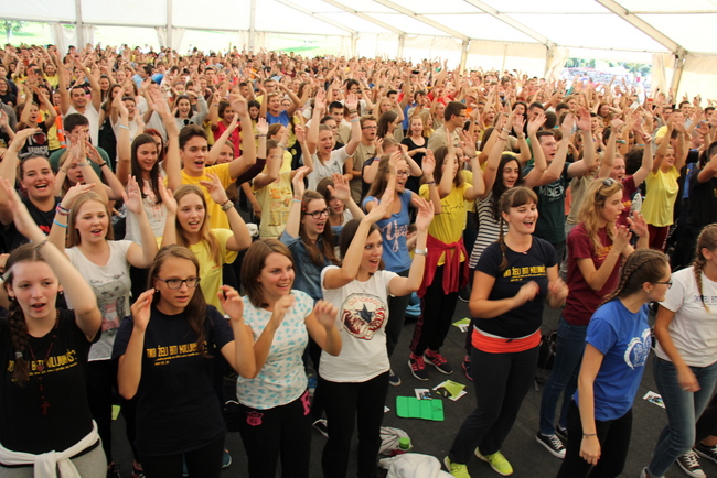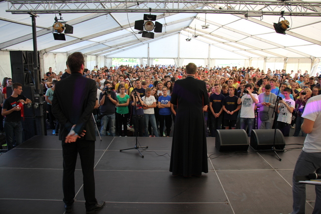 Nakon okrjepe i odmora, mladi su se okupili u šatoru kako bi pjesmom i plesom sudjelovali u središnjem dijelu hodočašća. Nadbiskupijski zbor mladih za tu je prigodu pripremio bogat glazbeni program kojim su animirali okupljene mlade. Katehezu o poveznici modernih vrijednosti i Marijina života održao je fra Ivan Matić, voditelj Kuće susreta „Tabor“. „Kako bismo razumjeli smisao našega života, vratimo se izvoru, Mariji koja nas uvijek usmjerava prema svojem Sinu Isusu u kojemu su svi odgovori; koji nam je po Mariji postao brat i na taj način nam pokazao koliko smo važni Bogu“, istaknuo je popularni fra Johnny.