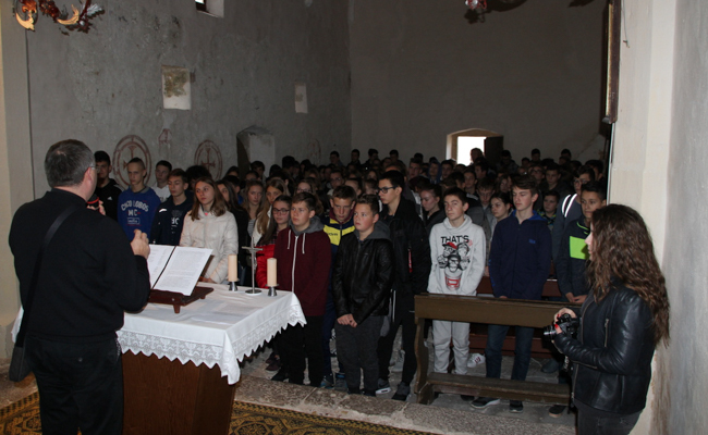 Sljedeća postaja hodočašća bio je Sveti Petar u Šumi gdje su krizmanici sa svojim župnicima slavili svetu misu. Misno je slavlje predvodio o. Mario Škrtić, koji je jedno vrijeme službovao baš u ovoj župi, a prigodnu je homiliju održao mons Sente. Želja nam je ovim hodočašćem pokazati vam dragi krizmanici ljepotu pripadanja hrvatskom narodu i Katoličkoj Crkvi, jer pridamo narodu koji već na samim počecima svog dolaska na ove prostore ima svoje pismo, a svoj jezik za razliku od daleko većih naroda koristi i liturgijskim slavljima.