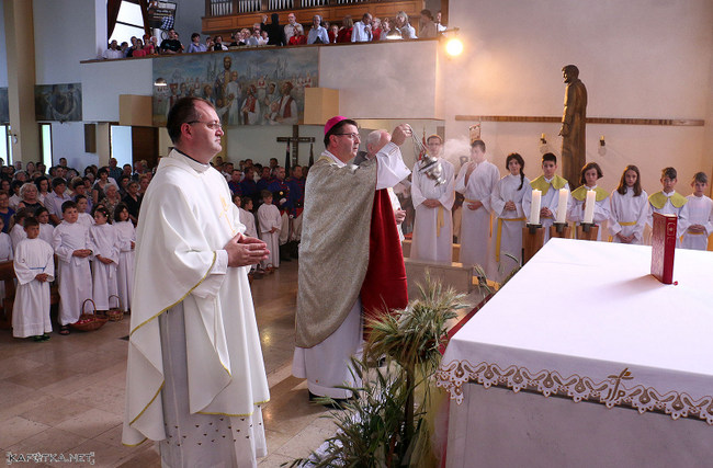 Svakim se slavljem i primanjem Euharistije preobražavamo, pročišćujemo svoje živote i udaljavamo od grijeha, jer nam se daje predokus Nebeskoga kraljevstva, jer ovdje na zemlji shvaćamo što je zapravo punina našeg života.“ Biskup Šaško poručio je vjernicima kako je novi život, koji možemo živjeti, opisan u četirima gestama kojima je Isus ustanovio novi savez u svome Tijelu i Krvi: On uze kruh, blagoslovi, razlomi i dade.