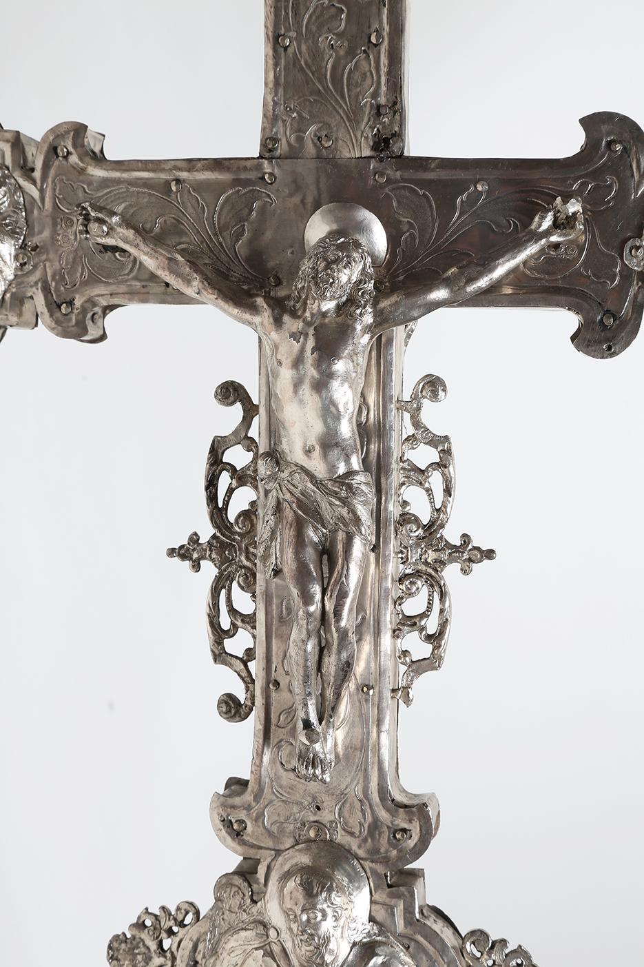 Ulaskom u Bogoslužni prostor blaženog Alojzija Stepinca, mnogi vjernici primjećuju iznimno procesijsko srebrno barokno raspelo, jedno od najvrjednijih sakralnih umjetnina Zagrebačke nadbiskupije. Ovo remek-djelo sakralne umjetnosti nabavljeno je 1982. godine, a stoljećima se čuvalo u Riznici Zagrebačke katedrale pod inventarnim brojem RZK M 359. Datira iz kasnog 17. ili početka 18. stoljeća i pripada venecijanskoj srebrenarskoj tradiciji, što je potvrđeno stručnom analizom dr. Ive Lentića. Izrađeno je u raskošnom baroknom stilu i nosi službene oznake Mletačke Republike.