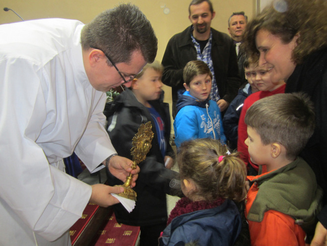 Vlč. Migles se posebno obratio prvopričesnicima, koji su predstavljeni na sv. misi, govoreći im o spremnosti ovoga sveca da ode u daleke, nepoznate zemlje širiti Božju riječ bez oklijevanja, oboružan najjačim mogućim oružjem - krunicom i križem.