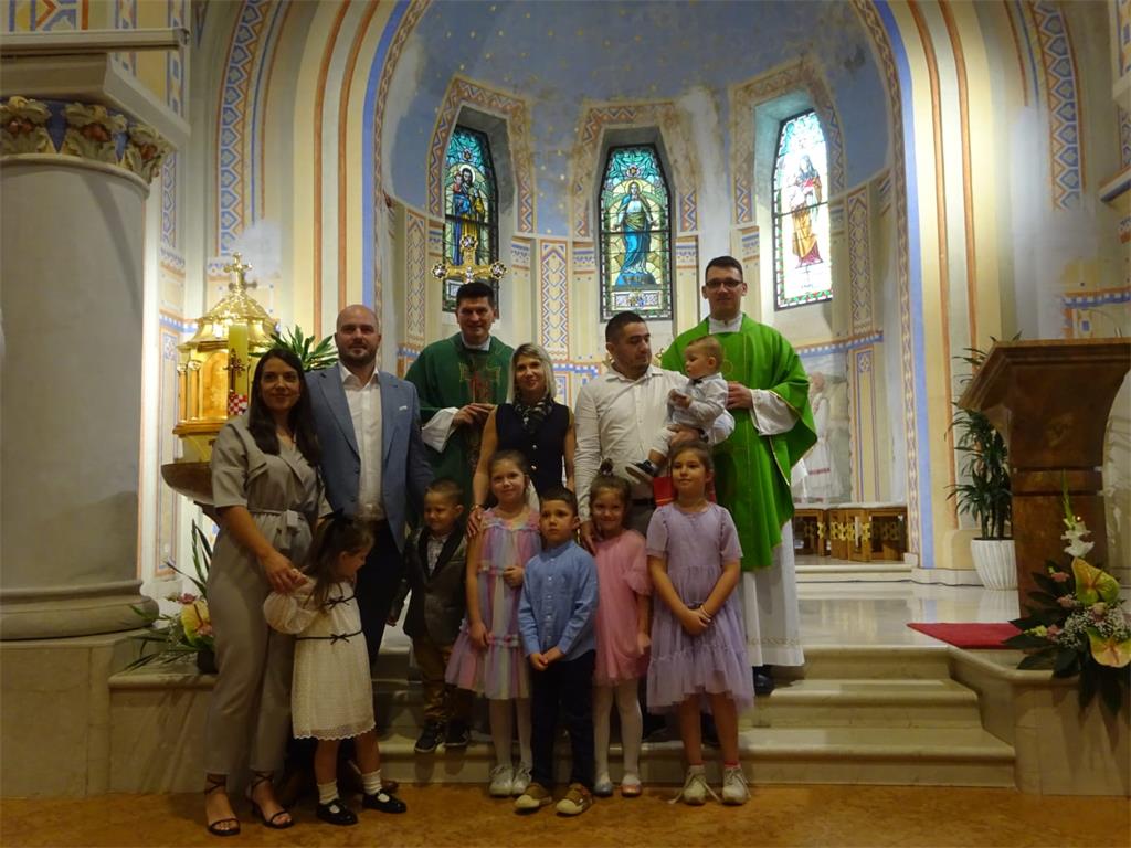 Svetu misu predvodio je preč. Domagoj Matošević, moderator Nadbiskupskog duhovnog stola, koji je i podijelio sakrament krštenja dječaku Janu.